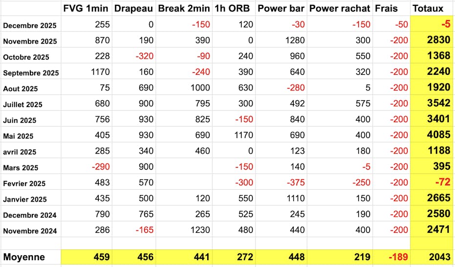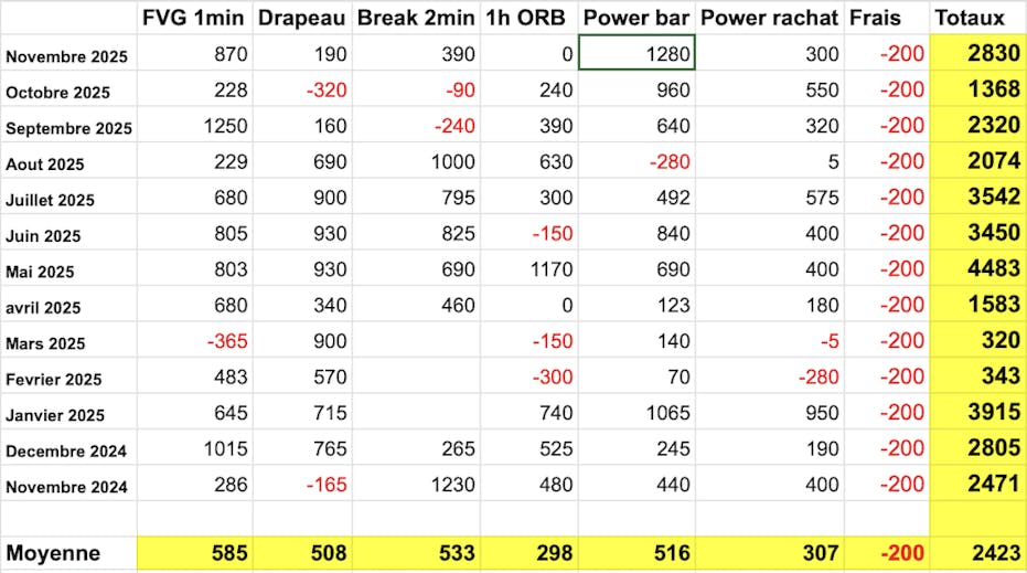 Tu as accès aussi au fichier Google où je glisse chacun des trades.