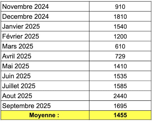 On obtient cette moyenne mensuelle au-dessus de 1000$